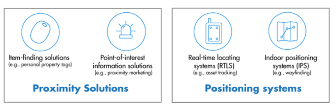 藍牙因其無處不在的特性脫穎而出。挑戰在于如何以標準的方式實現定位服務。到目前為止,藍牙已經提供了有用但精度較低的定位信息(圖1)。藍牙低能量(BLE)標準允許兩個藍牙設備利用接收到的信號強度測量來獲得兩個設備之間的大致距離。這提供了很好的接近信息,當不需要詳細的位置信息時是非常有效的。