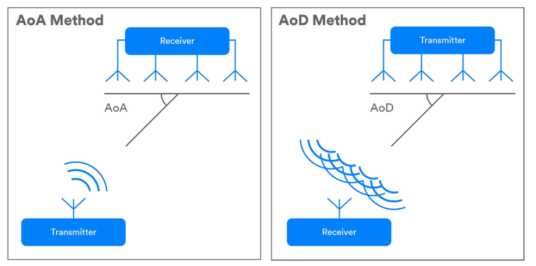 最新藍牙標準(5.1)允許系統使用天線陣列來確定通信方向(圖3)。使用天線陣列的單個設備可以與任何其他藍牙設備一起確定彼此的相對方向。這是通過測量到達角(AoA)或離開角(AoD),這取決于通信的方向和哪個設備有天線陣列。